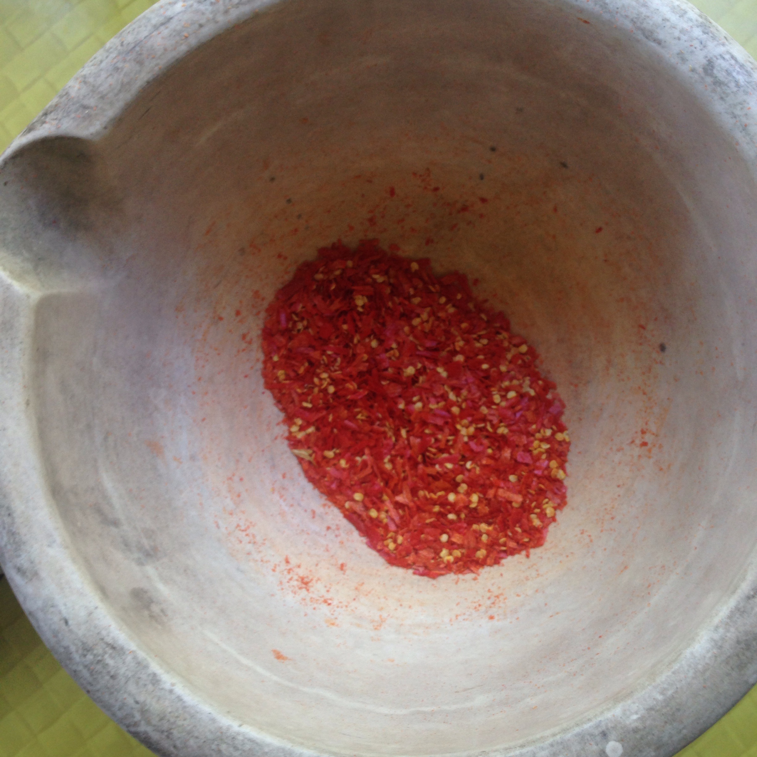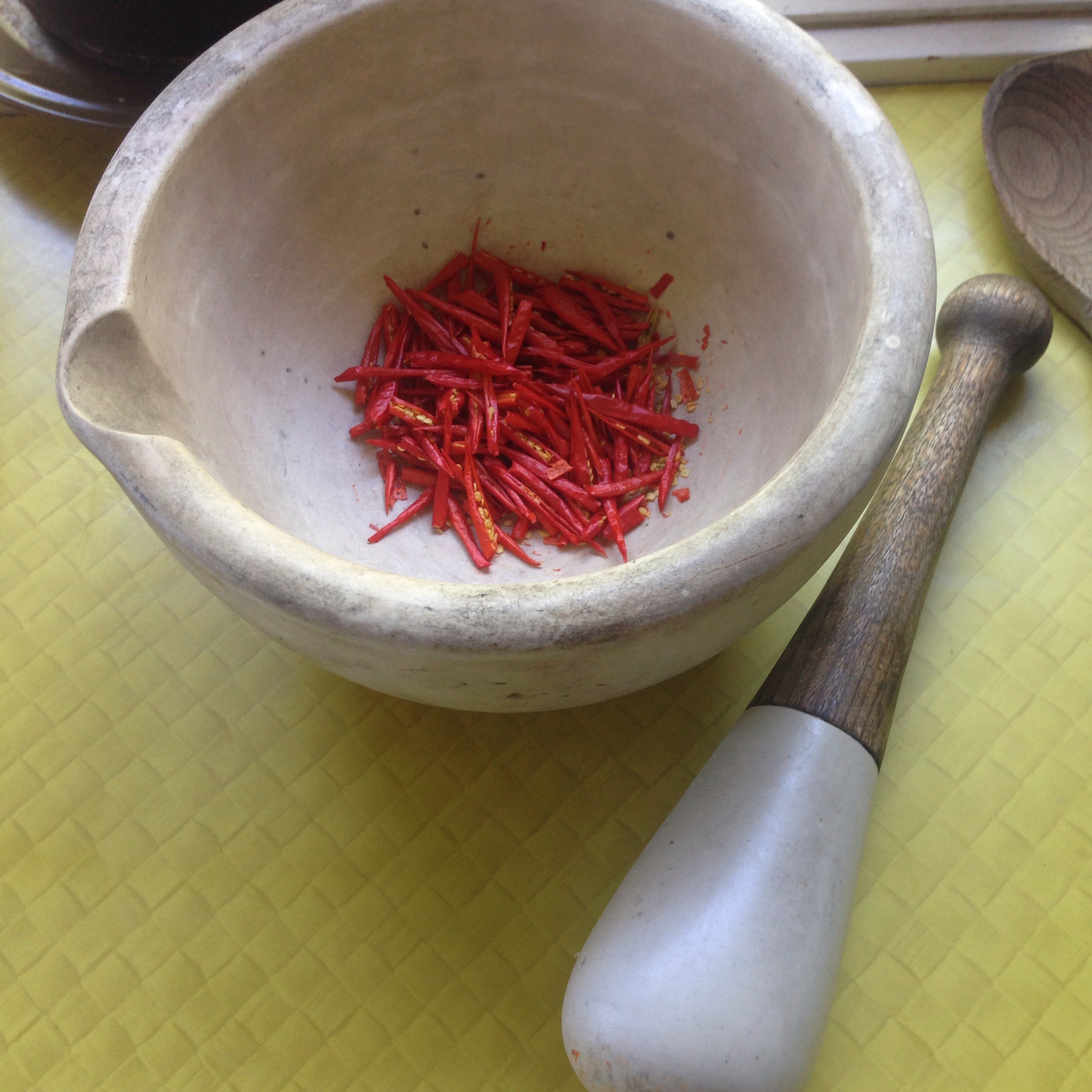A lovely house-sitter recently gifted us a thank you chilli plant. I’ve never had much success growing them myself but this one was already groaning with firey red fruit so the question was, what to do with it all?