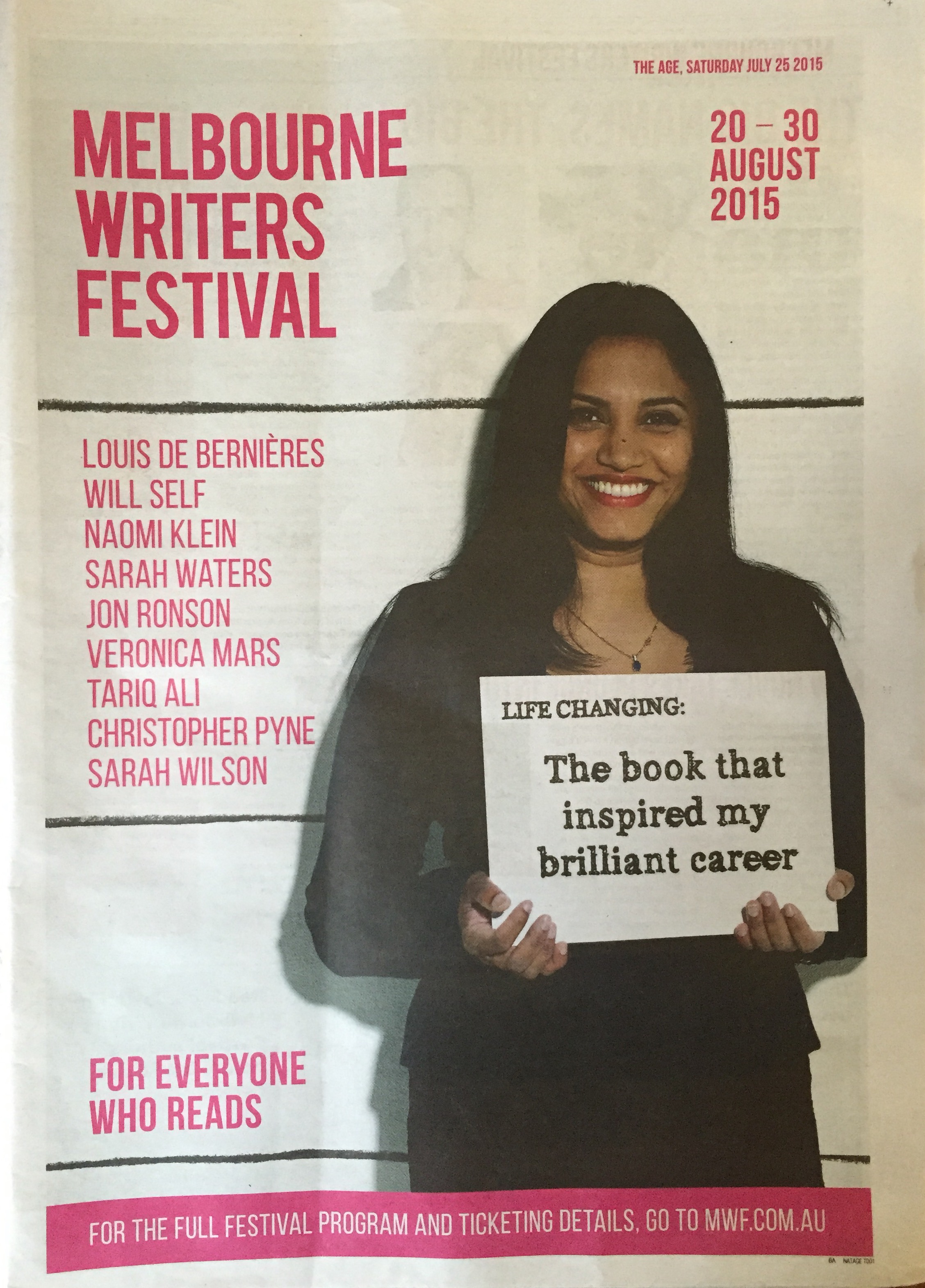 A week or two ago I enjoyed working with the team at the Melbourne Writers Festival and Mediaxpress to create this insert in the Age. I got to speak to some great writers and journalists on the job, which meant writing tight 250 and 500-word stories giving readers a taste of what the festival has in store.