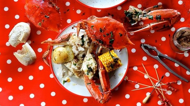 Cracking good fun: Crab boil from the American south is Will Balleau’s hit dish. Photo: Edwina Pickles