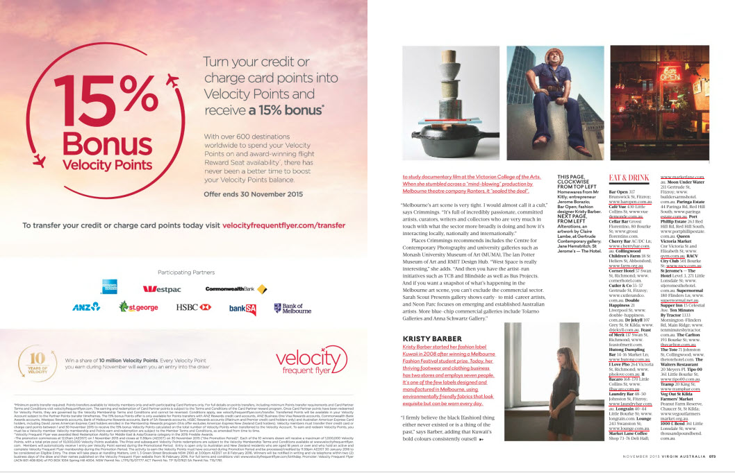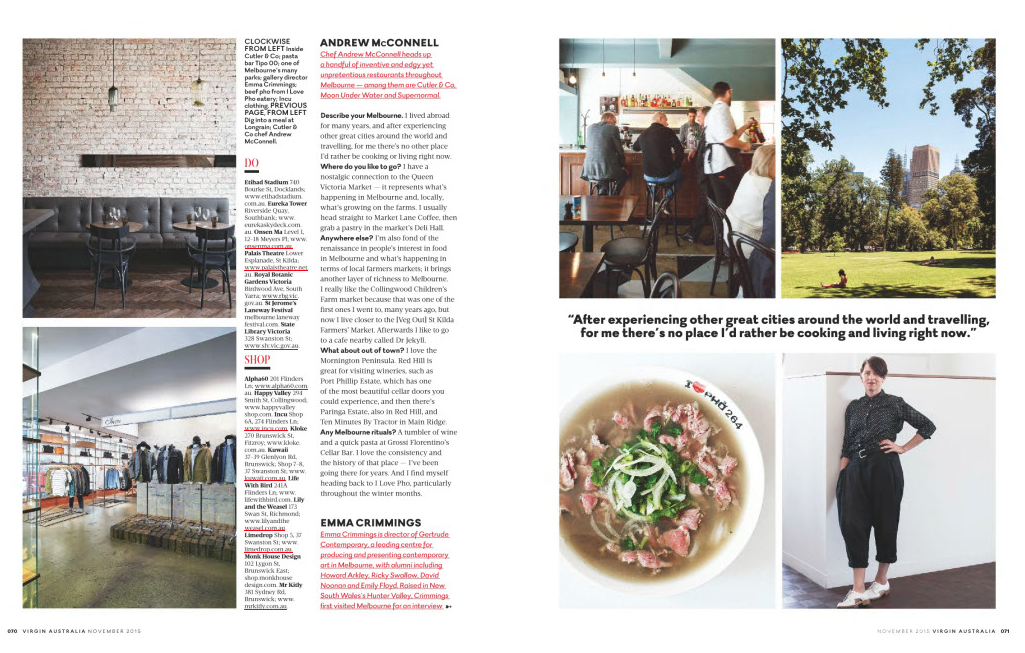 If you’re flying Virgin this month look out for my story about Melbourne on page 68 of the airline’s inflight mag, Voyeur.