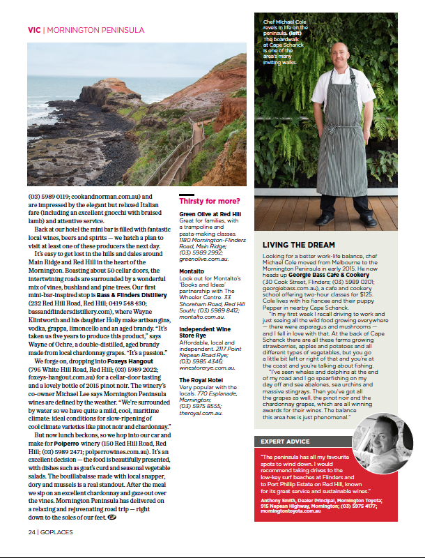 My eagle-eyed photographer wife Emma Byrnes and I travelled around the Mornington Peninsula recently, putting together this summer 2016/17 cover story for Go Places With Toyota magazine, published by Pacific+.