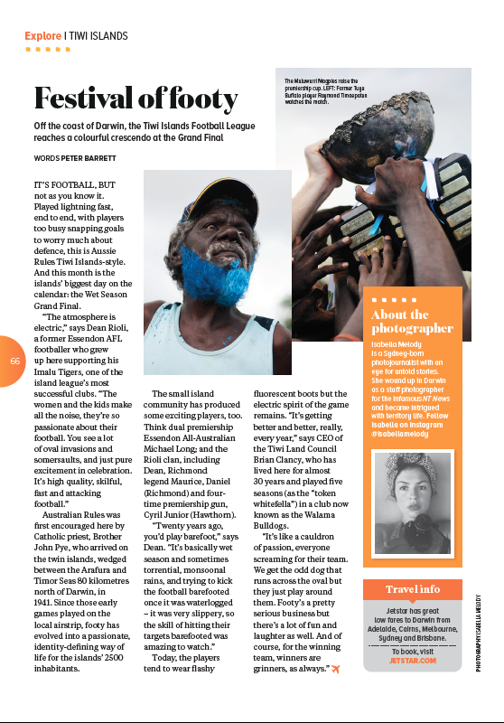 In this month’s Jetstar magazine I have four stories: an interview-with-peter-hellier about his first children’s book, a story about Tiwi island’s obsession-with-football, my Suits You column on decluttering and a back page reflection on teaching-english-in-vietnam.