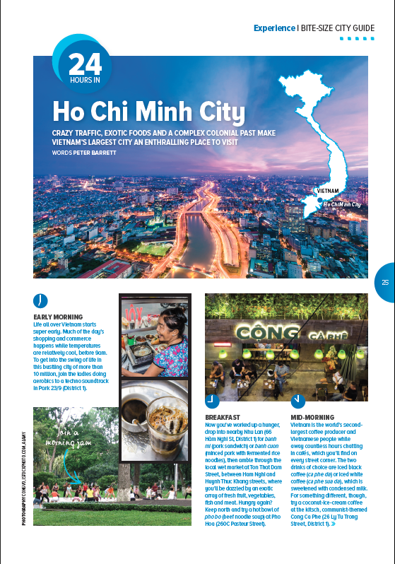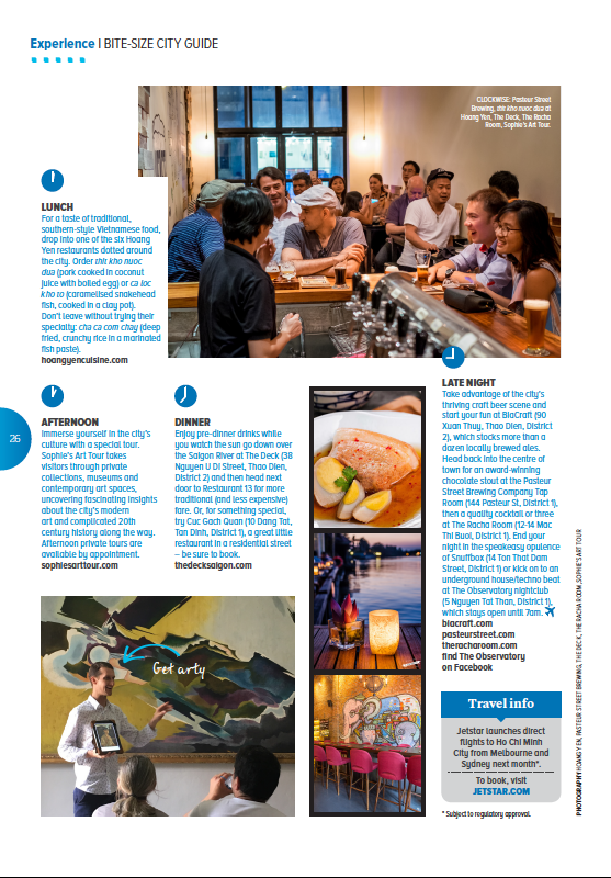 The April issue of Jetstar magazine features my story about the best way to spend a day and night in Ho Chi Minh City, AKA Saigon, in Vietnam. We had a ball in HCMC and thoroughly recommend a visit if you haven’t been there before.